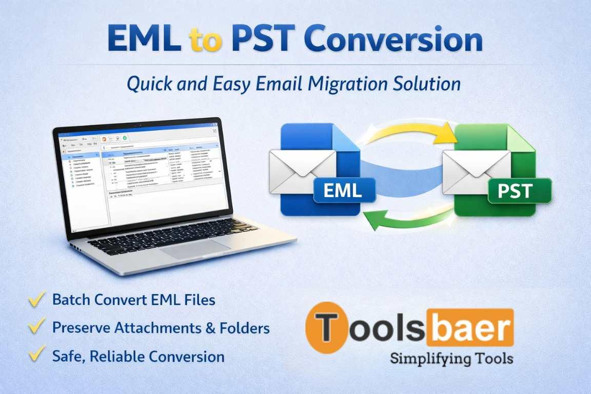 Toolsbaer EML to PST Converter is a software for enhancing the management of emails by converting EML files into PST format. It provides a bulk conversion feature and has compatibility with every version of the Windows OS and Mac OS.