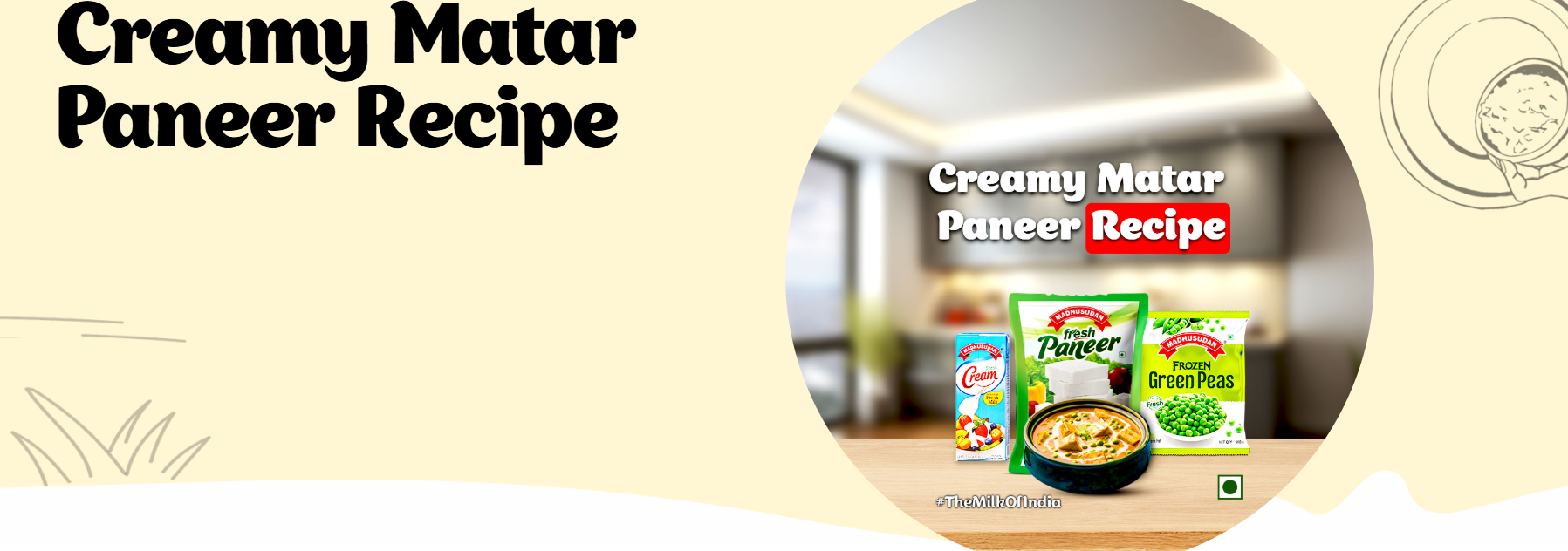 Creamy Matar Paneer by Madhusudhan is a rich and comforting North Indian dish made with soft paneer cubes and sweet green peas cooked in a smooth, creamy gravy. Blended with aromatic spices, tomatoes, and a touch of cream, it delivers a perfect balance of flavor and texture. This delicious recipe pairs beautifully with roti, naan, or rice, making it an ideal choice for family meals or special occasions full of authentic taste.