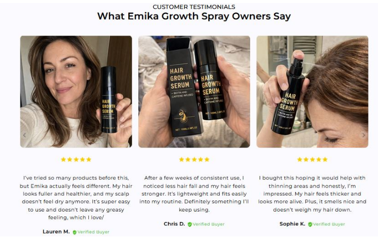 The core idea behind Emika Price and Reviews Spray is not “regrowing hair instantly,” but rather improving scalp health and hair appearance through consistent care.