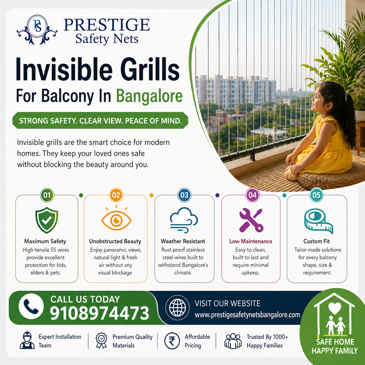 The demand for balcony safety solutions in Bangalore has increased due to the rise in apartment living. Homeowners are now shifting towards advanced options like invisible balcony grills, which offer both durability and style. These systems are corrosion-resistant and built to withstand different weather conditions, making them suitable for long-term use.