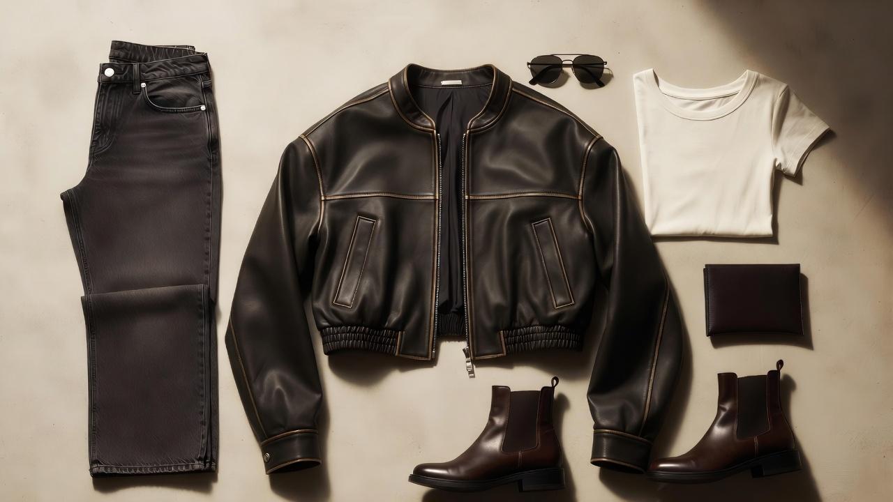 How a Cropped Bomber Leather Jacket Transforms Outfits
