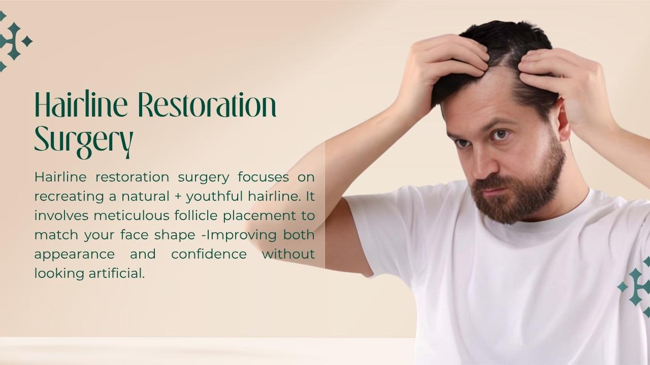Hairline restoration surgery helps recreate a natural-looking hairline by carefully placing healthy hair follicles. It improves facial balance and restores confidence with natural results.