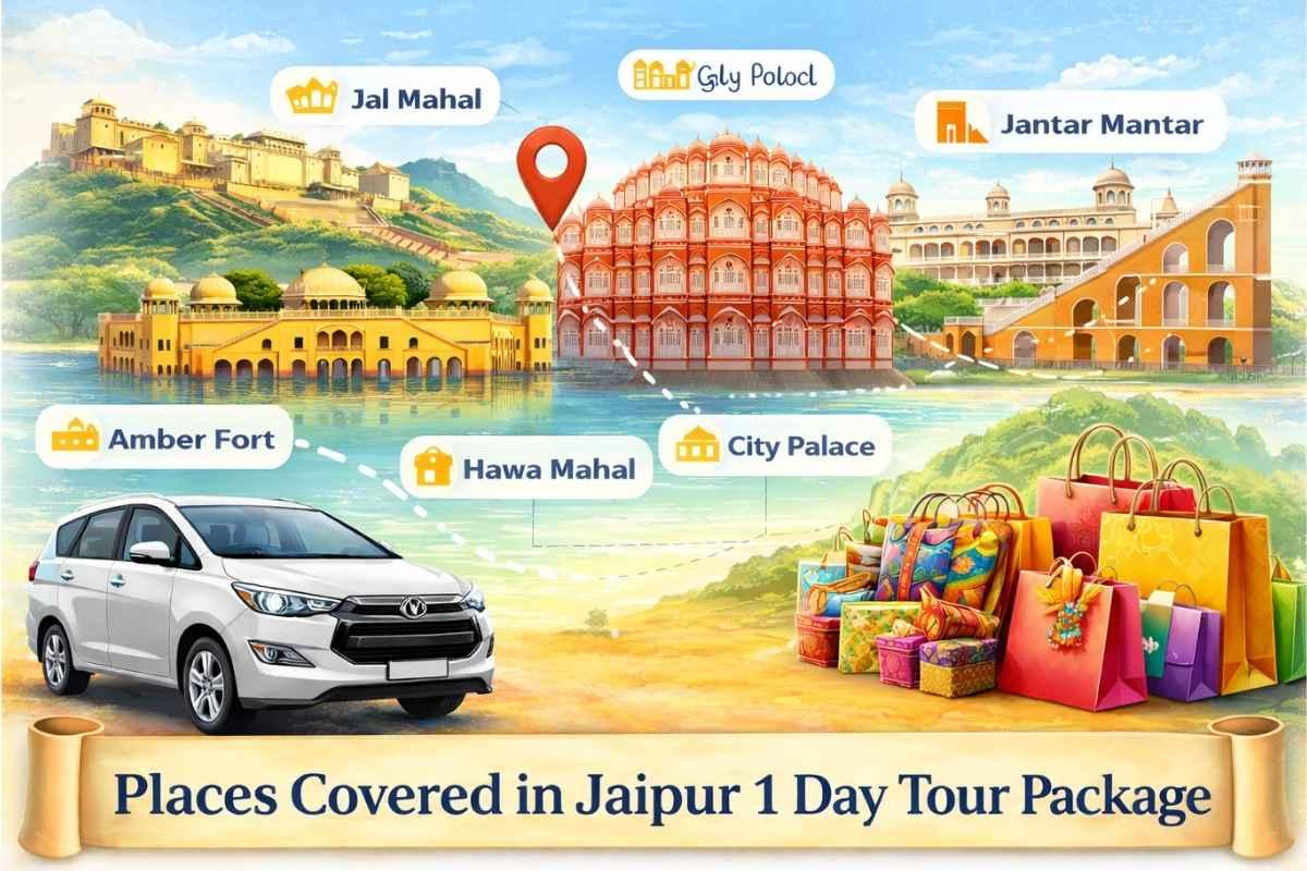 Discover the best of the Pink City with our Jaipur 1 Day Tour Package. Visit popular attractions like Amber Fort, Hawa Mahal, City Palace, and Jal Mahal in a comfortable private car with driver. Rajasthan Tour Travels offers affordable sightseeing tours, professional drivers, and a hassle-free travel experience in Jaipur.